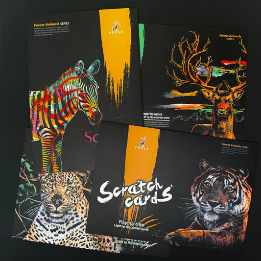 The Large Scratch Boards include a scratching board (40.5cm x 28cm), a practice board, and a bamboo stylus.